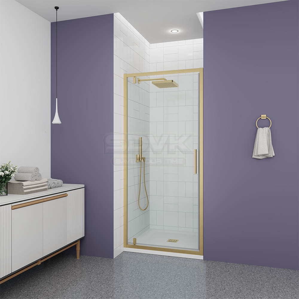 Душевая дверь Ottimo с прозрачным стеклом и профилем брашированное золото — это премиальный комфорт и безупречный стиль для ванной комнаты, наполненной светом и благородным сиянием золота.