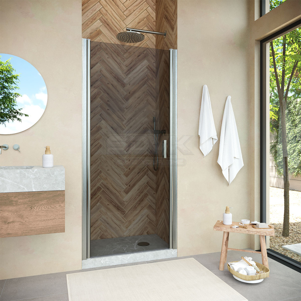 Распашная душевая дверь Vegas-Glass 80х200 EP NOVO h2000 80 04 07 с профилем никель и стеклом графит представляет собой современное и стильное решение для ванной комнаты.