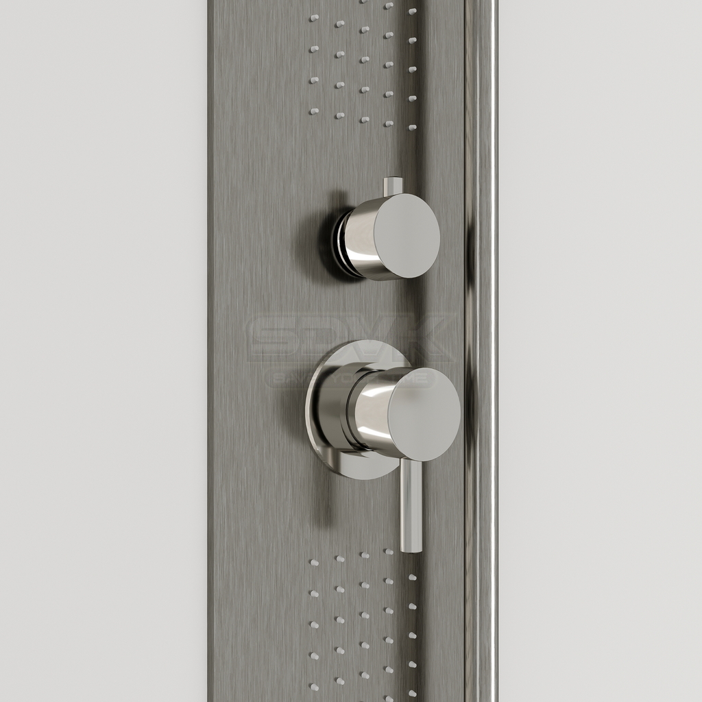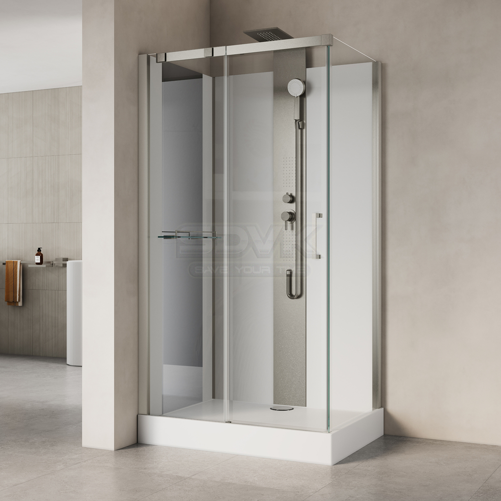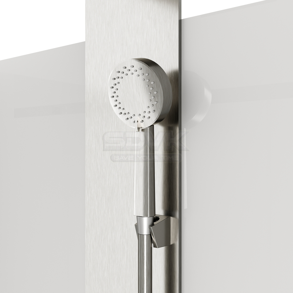 Душевая кабина Galaxy 110x80 — это диалог мягкого металлического свечения и кристальной прозрачности, создающий в ванной комнате атмосферу спокойной гармонии. Её дизайн, выполненный в цвете брашированного никеля, привносит в строгий датский минимализм ноту тихой, тактильной элегантности. Тонкие штрихи на поверхности профиля ловят свет, наполняя пространство тёплым, бархатистым сиянием, которое говорит не о роскоши, а о безупречном чувстве меры и уюте.