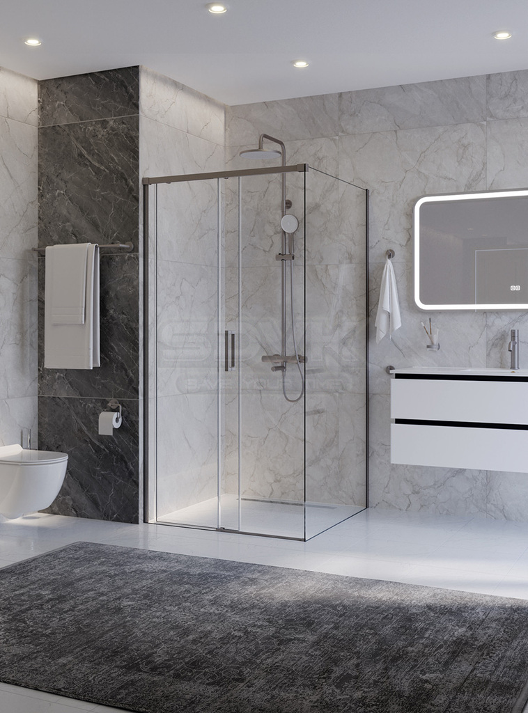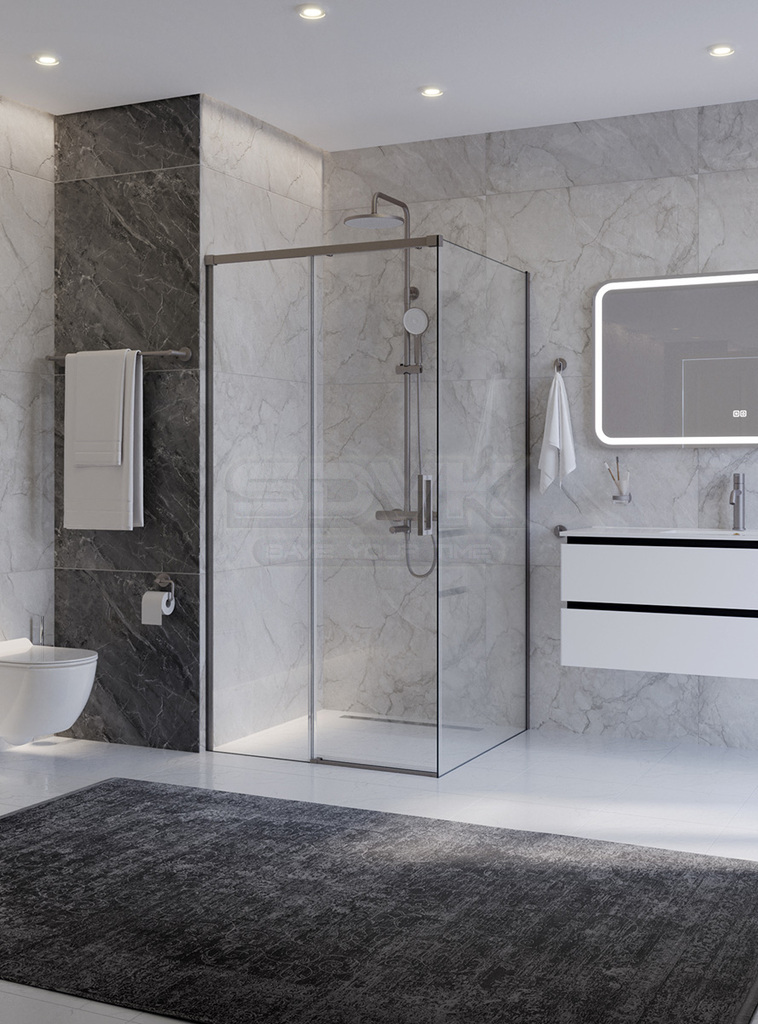Душевой уголок PLANE в отделке «сатин» — это образец сдержанной элегантности и современного минимализма, созданный для интерьеров, ценящих благородную матовость.