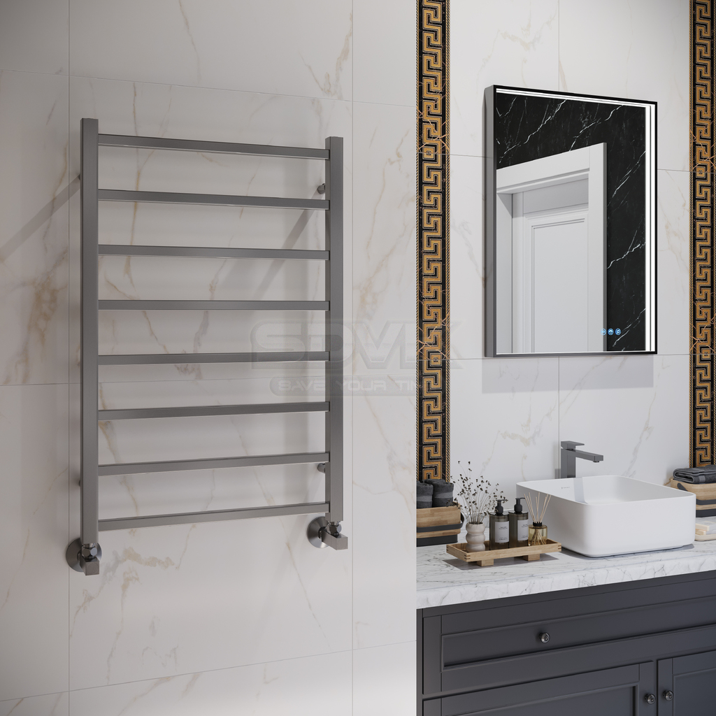 Изготовленный из прочной нержавеющей стали, прибор обеспечивает долговечность, коррозионную стойкость и неизменно аккуратный внешний вид. Он гарантирует быстрое высыхание полотенец, приятное тепло и устранение излишней влажности, превращая ванную в уютное и практичное пространство.