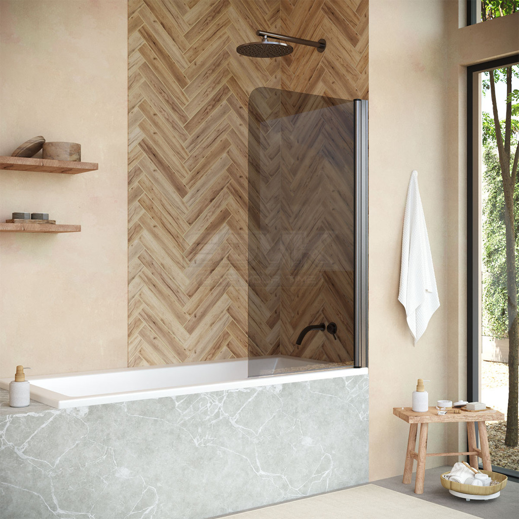 Сочетание графитового стекла и профиля «оружейная сталь» создает эффект монолита: шторка воспринимается не как утилитарный аксессуар, а как полноценный элемент архитектуры ванной комнаты. Она визуально не утяжеляет пространство, но придает ему характер, собранность и современное звучание. Уход за поверхностью минимален: матовые текстуры скрывают следы от капель и налет, сохраняя презентабельный вид даже при редкой уборке.